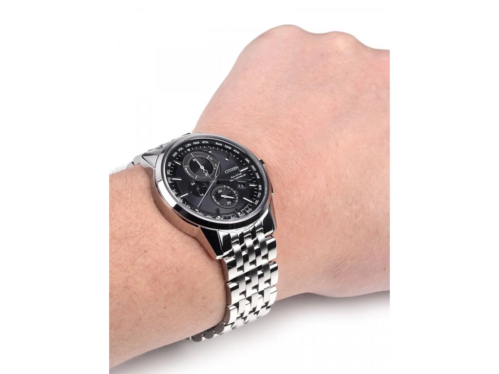 Pouzdro hodinek Citizen AT8110-61E je vyrobeno z ušlechtilé oceli, stejně jako jejich náramek. Uvnitř tohoto pouzdra pracuje strojek Citizen H804, který nabízí naprosto přesný čas díky systému Radio-Controlled, tedy synchronizaci času pomocí rádiového signálu. Spolehnout se lze i na další funkce, jako indikace stavu nabití baterie, zabránění nadměrnému nabití, varování při nedostatečném nabití dvouvteřinovými skoky vteřinové ručky, nebo přechod do režimu úspory energie. Využít lze též funkci stopek s přesností 1/20 s, nebo 24 hodinový subčíselník na pozici 9 hodiny. Velmi praktický je ukazatel data a dne v týdnu.